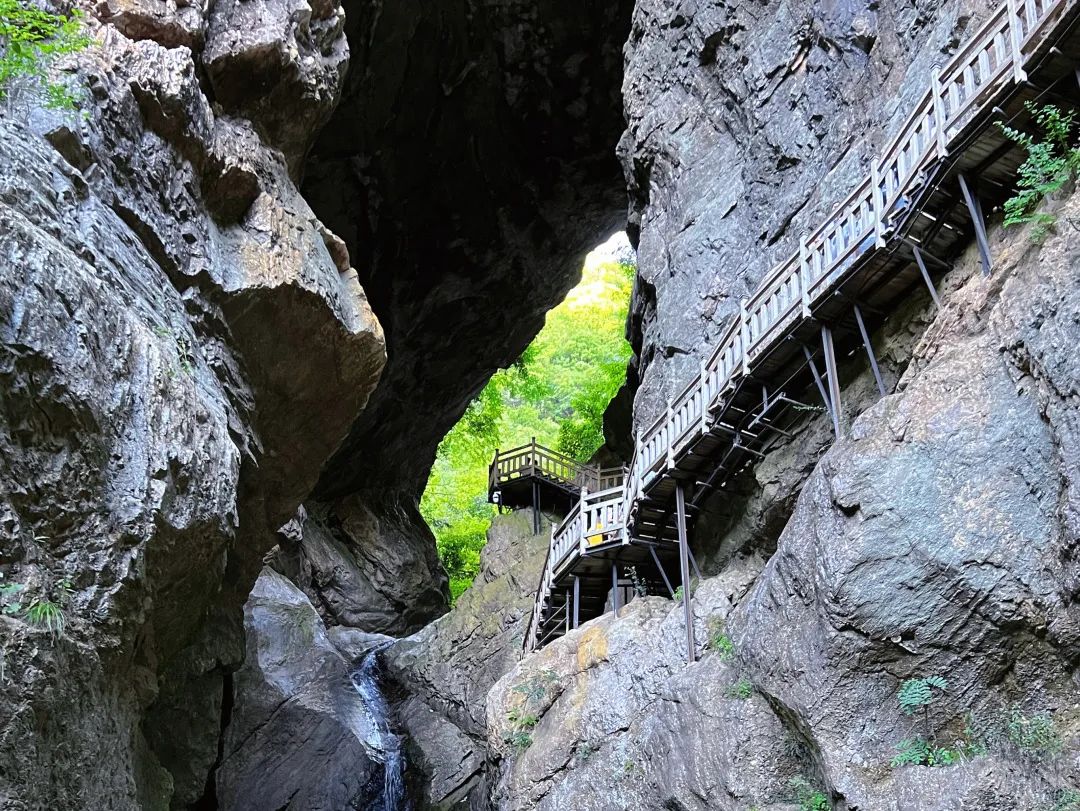 从官门山到神农坛,大家跟随讲解员的步伐从上至下依次游览,河岸两侧山峰林立、林木葱郁、遮天蔽日,河内流水潺潺、穿梭于山林之间,在20摄氏度的气温中呼吸神农架饱含负氧离子的空气顿感神清气爽。