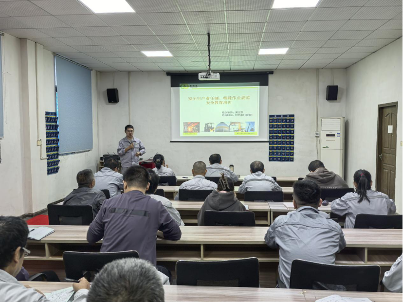 湖北吉和昌化工科技有限公司于2025年9月23日晚18点,在公司二楼会议室举办了一场安全生产责任制及特殊作业安全规范的培训。此次培训由安全储备总监周文杰授课,全体员工齐聚一堂,认真倾听学习。