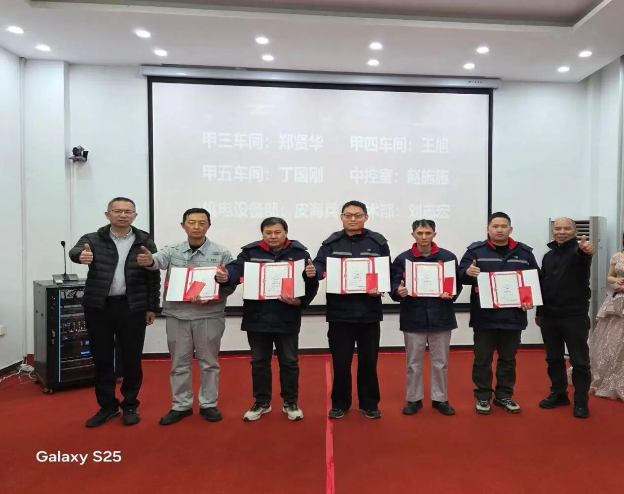 获奖员工们依次上台领奖,分享自己的获奖感言及工作经验,现场气氛热烈,掌声不断。