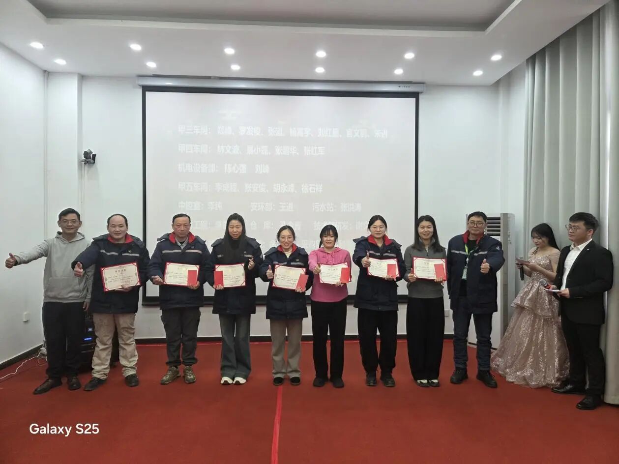 伴随着激昂的音乐和热烈的掌声,表彰大会正式拉开帷幕。首先进入的是表彰环节,表彰对象为 2025 年度最美奋斗者、优秀员工、安全生产先进员工及先进部门。
